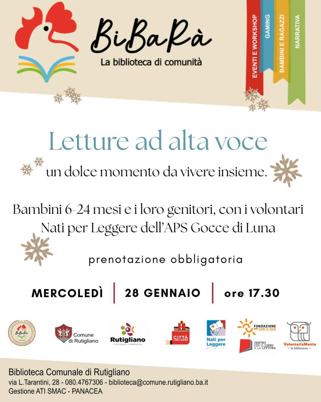 letture bambini dai 6-24 mesi. A cura dei lettori Volontari Nati per Leggere dell'APS Gocce di Luna, nell'ambito del progetto Volontariamente in Biblioteca
